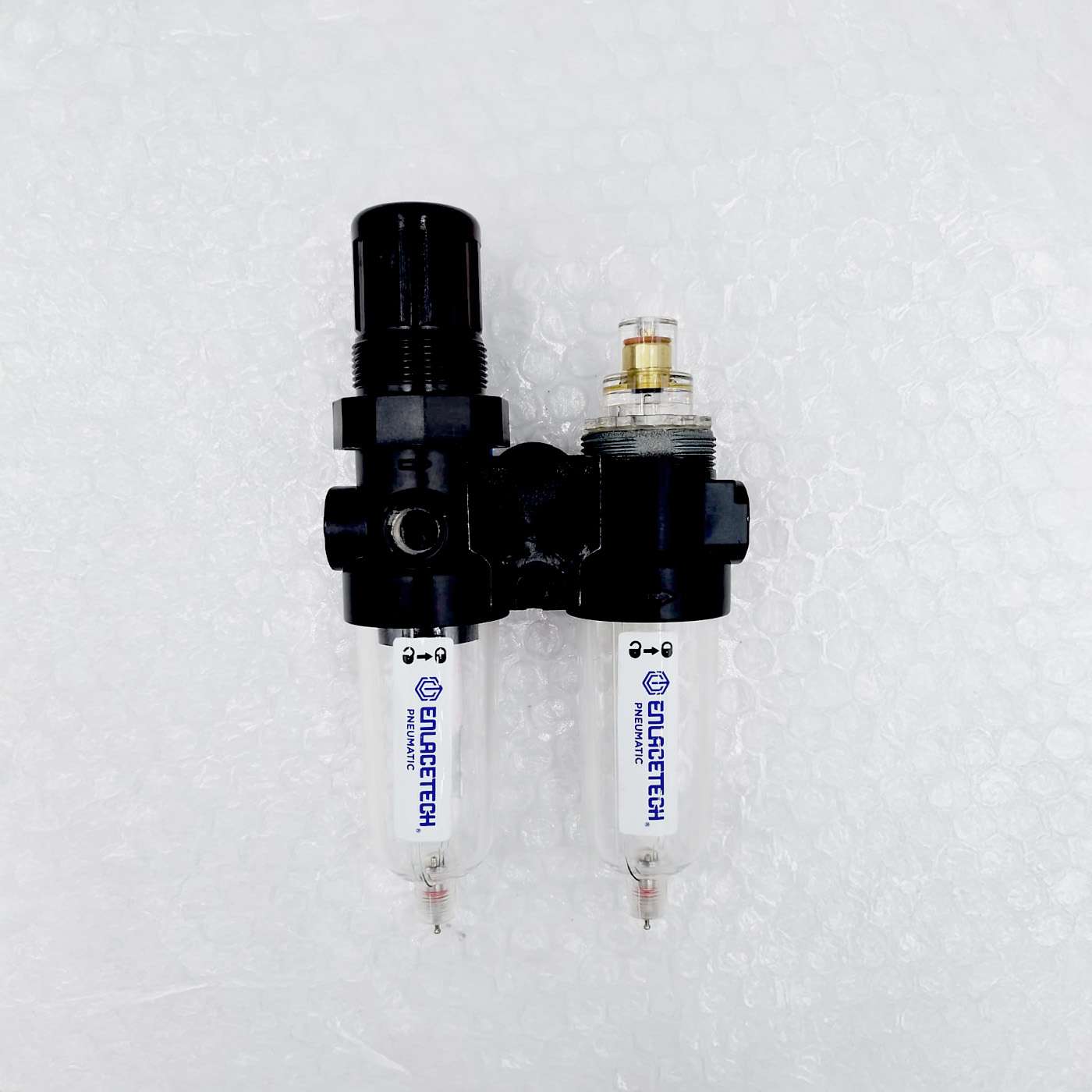 Un regulador de tratamiento de aire de automatización neumática.
