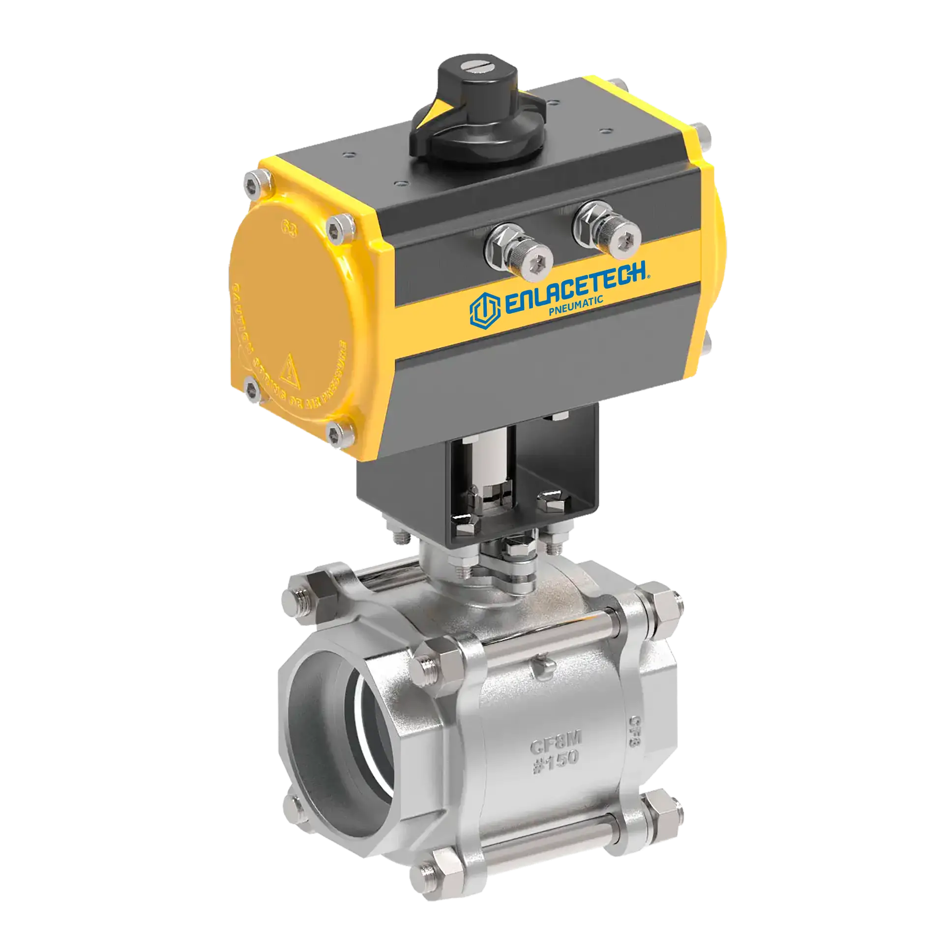 - Válvula de bola de doble sello con diseño de 3 piezas.
